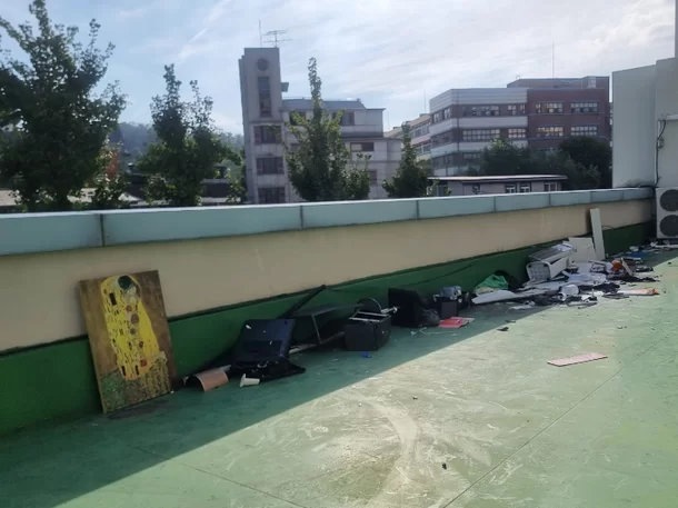다행히 물건들은 상가 건물 2층 옥상으로 떨어져 인명피해는 없는 것으로 알려졌다. 하지만 물건들이 깨지면서 날카로운 파편이 사방에 뿌려져 자칫하면 인명 피해가 발생할 수도 있는 위험한 상황이었다.