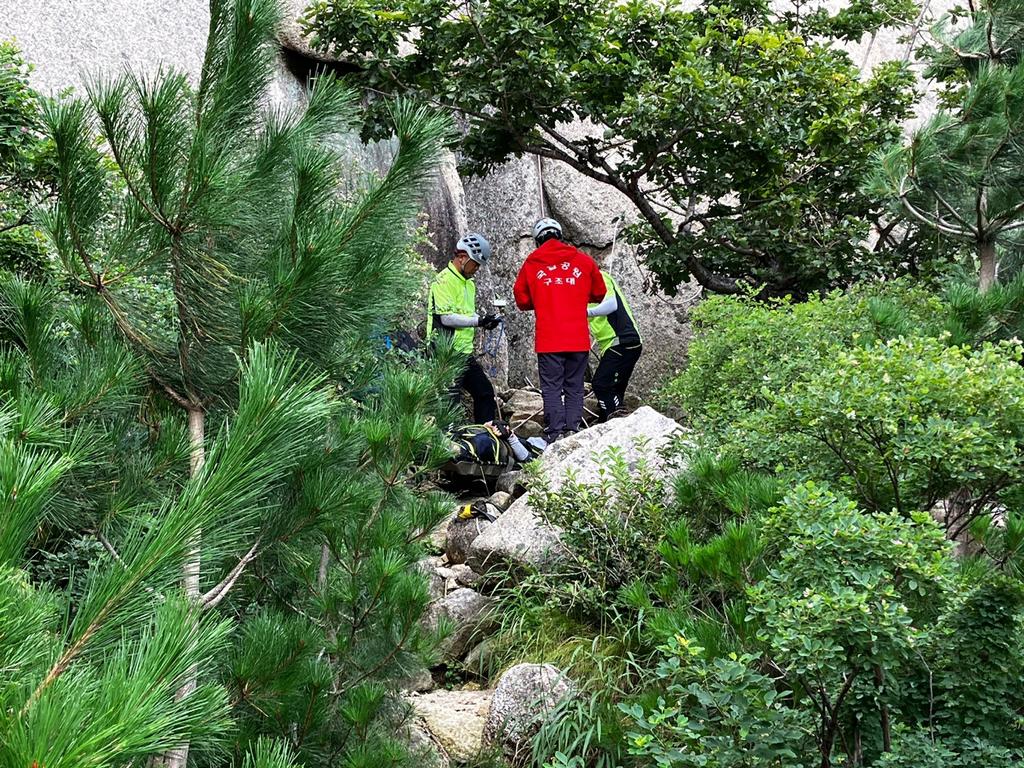 구조대가 도착했을 때 사고자의 상태는 머리가 바위 사이에 끼여 의식이 없었다. 구조대는 A씨를 헬기로 옮긴 후 속초 모 병원으로 이송했다.