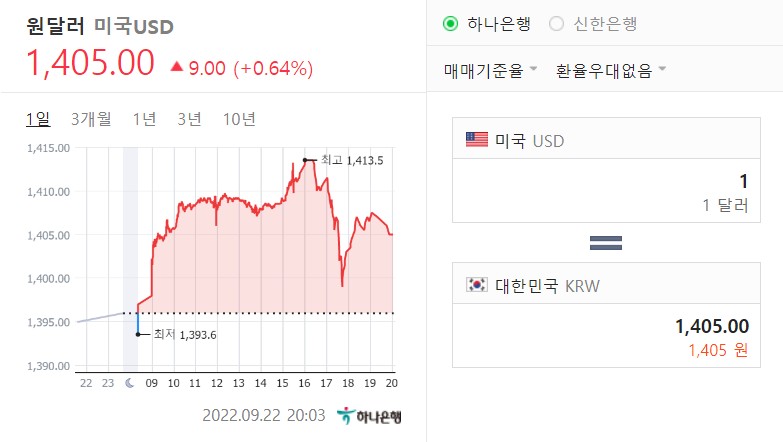 한 줄 요약 : 원달러 환율이 13년 6개월여 만에 처음으로 1400원을 넘어섰다.
