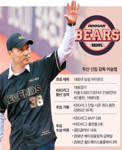 '국민타자' 이승엽이 프로야구 두산 베어스 지휘봉을 잡는다.
