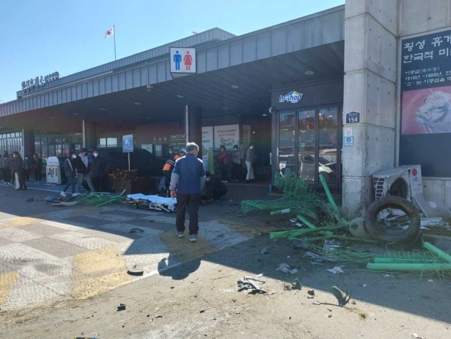 이 사고로 차량에 부딪힌 휴게소 이용객 B씨(62)가 심정지 상태에서 병원으로 옮겨졌으나 숨졌다.