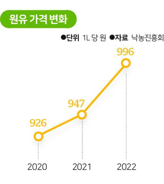 농림축산 식품부에 따르면 전날 낙농진흥회는 우유 원유 기본 가격을 L당 999원으로 올려 연말까지 적용하기로 결정했다.