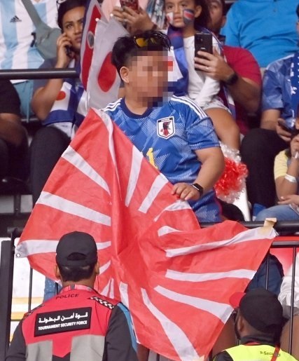 27일 오후 7시(한국시간) 일본과 코스타리카의 FIFA 2022 카타르 월드컵 조별리그 E조 2차전 경기가 열리는 카타르 알 라이얀 아흐마드 빈 알리 스타디움 관중석에 욱일기가 등장했다. 일부 일본 관중들이 붉은 원에 줄무늬가 뻗어나가는 욱일기를 펼쳤다.