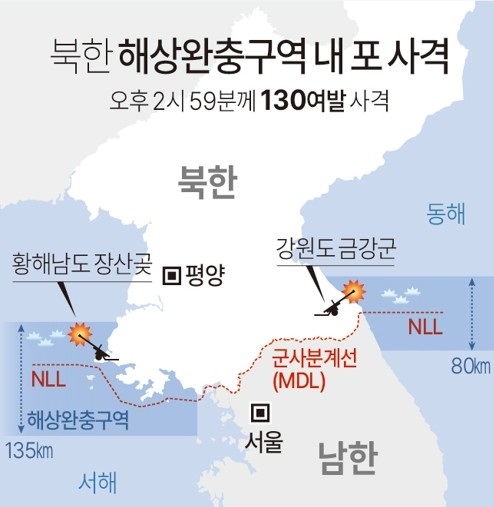 한 줄 요약 : 북한이 동·서해상의 9·19 남북 군사합의로 설정된 해상완충구역에 130여 발의 방사포로 추정되는 포병 사격을 했다.