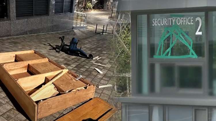 이어 주변 여기저기 흩어진 유리 파편과 가구 조각도 보이고 경비실은 유리창이 산산조각 난 상황으로 인명피해까지 우려되는 모습이었다. 경찰은 30분 뒤에 출동을 했고 그 뒤에야 난동이 끝났다.