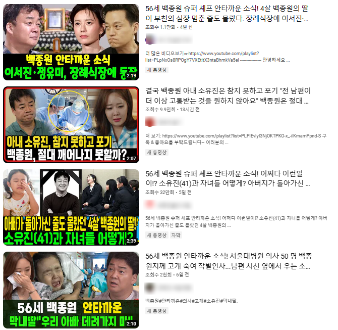 1. '백종원 사망설' 가짜뉴스 퍼트린 유튜브