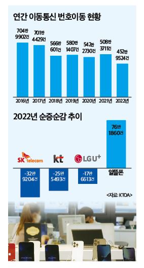 통신업계 관계자는 “알뜰폰(MVNO)의 기록적 성장에 따라 이동통신 3사가 지난해부터 급격한 변화를 겪고 있다”고 전했다.