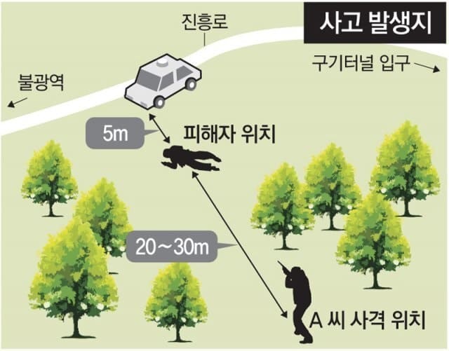 A 씨는 지난해 4월 29일 서울 은평구 녹번동 구기터널 인근 야산 길가에 차를 세워둔 채 소변을 보던 70대 택시기사 B 씨에게 엽총을 쏴 숨지게 한 혐의를 받는다. 사고 당일 A 씨는 관할 파출소에서 수렵 허가 절차를 밟고 총기를 받은 뒤 야산을 다니다 B 씨를 멧돼지로 오인해 총을 쐈다고 진술했다.
