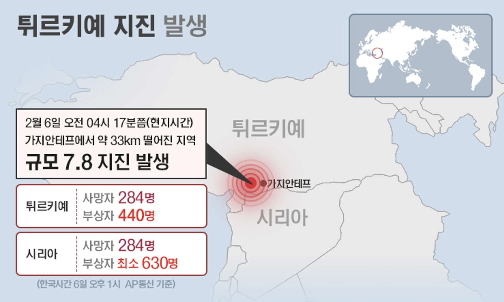 1. 튀르키예 규모 7.8 강진으로 수백 명 사망