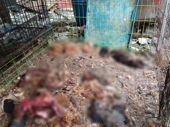 2시간 후 출동한 동물보호단체 '케어'에 따르면 불법 폐기물로 가득한 곳에서 약 천마리 사체들이 부패해 있는 모습을 촬영해 유튜브에 올렸다. 케어는 영상에서 "깊은 바가지 속에 사체들이 수북하게 쌓여 있다"며 "3년간 수백 명의 생명이 굶어 죽었다"라고 밝혔다.