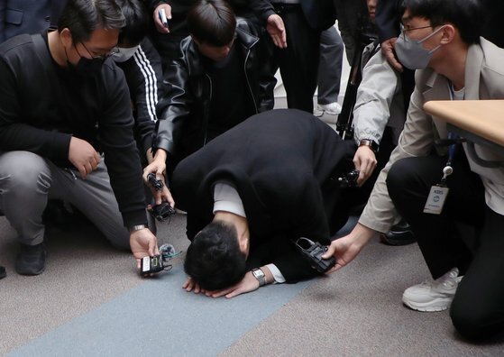 전 씨는 사과 발언을 한 뒤 유족에게 무릎을 꿇고 절을 올렸다. 유족들은 눈물을 훔치며 전 씨의 사과를 받았다.