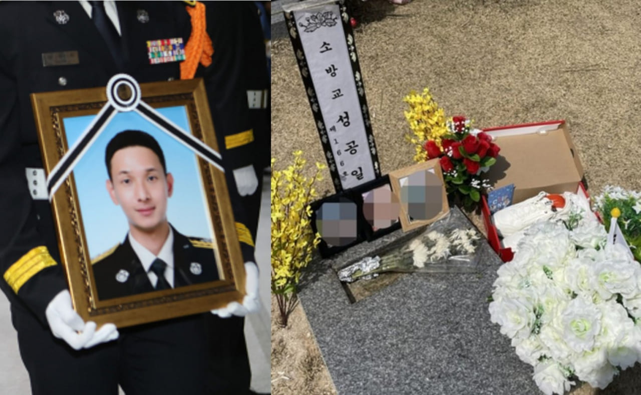 전북 김제 화재 현장에서 순직한 고(故) 성공일 소방교(30)의 묘소에 지인이 두고 간 생일 선물이 사라진 사실이 뒤늦게 알려졌다.