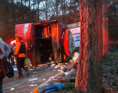 사고가 난 버스는 경주에서 출발해 안동을 거쳐 숙소인 수안보로 이동 중이었던 것으로 알려졌다.
