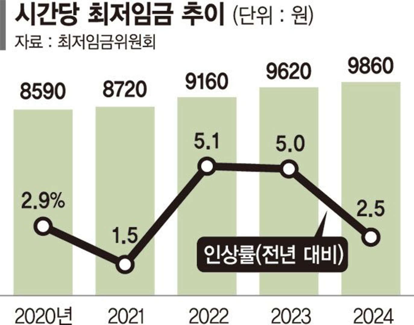 내년도 최저임금이 시급 9860원, 월급 206만 740원(209시간 기준)으로 정해졌다.
