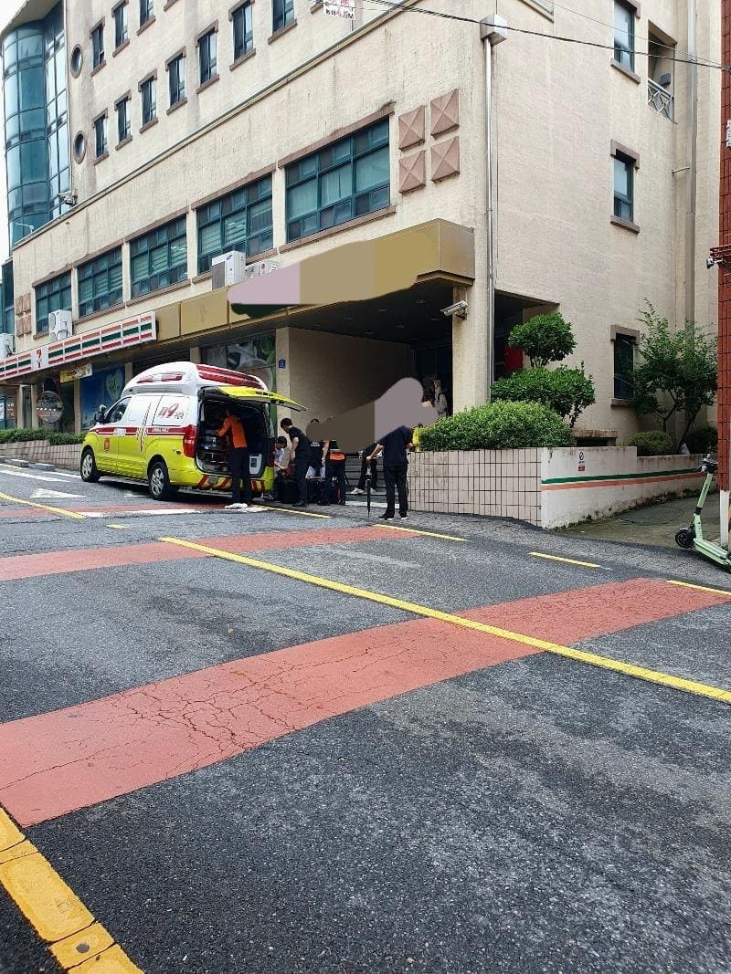 작성자는 사진과 함께 게시글에 "대우받아야 할 분들인 119 구급대원분들을 짐꾼으로… 캐리어 꽉 채우고 출발했다가 금방 다시 돌아와 상차하는 것 보니 구급차로 짐 셔틀 하나 봅니다"라고 적었다.