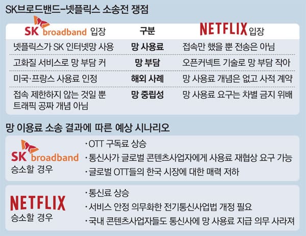 SK브로드밴드와 넷플릭스가 망 이용대가를 둘러싸고 벌인 소송을 취하하는 한편 합의점 도출에 나선다. 실제 이들이 합의에 이를 경우 2020년 4월 넷플릭스의 소송으로 시작된 양사 간 분쟁은 3년여 만에 마침표를 찍게 된다.