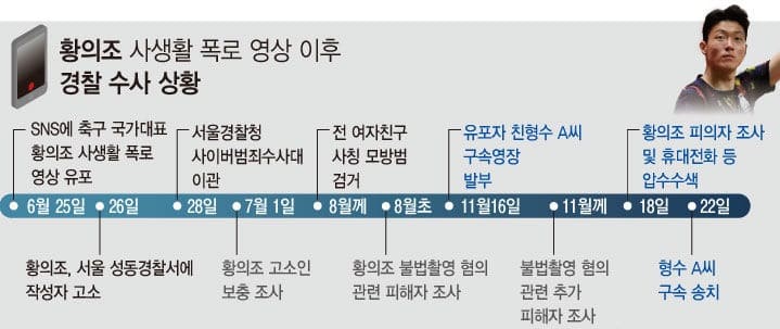이에 경찰은 황 선수에게 불법촬영뿐만 아니라 음란물 저장과 소지 혐의를 적용할 수 있을지 법리를 검토하고 있다.