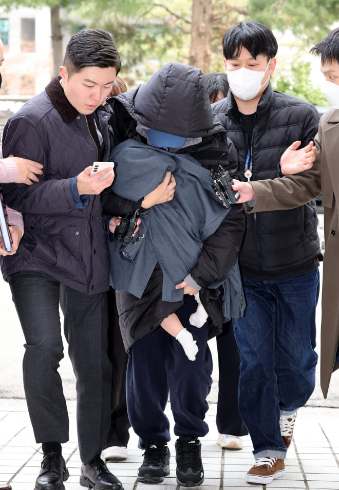 A 씨는 이날 구속 전 피의자 심문(영장실질심사)에 출석 전 아이를 안은 채 심사장 앞에 모습을 드러냈다. 구속심사를 받는 피의자는 (아이를 돌봐줄 사람이 없어) 부득이 한 경우 아이를 데리고 심사를 받을 수 있다.