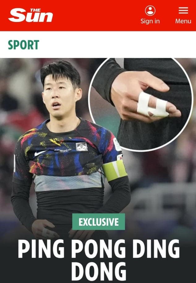 '더 선'은 제보자의 말을 인용, "일부 젊은 선수들이 밥을 매우 빨리 먹고 탁구를 치려 식사 자리에서 떠났다. 손흥민은 이들에게 돌아와 앉으라고 했다. 손흥민은 선수들을 진정시키는 과정에서 손가락을 다쳤다"는 내용을 전했다. 이들은 '젊은 선수들이 탁구를 치려 식사를 빨리 하는 것에 대해 손흥민이 팀의 결속력에 좋지 않게 생각했다'고도 설명했다. 또한 탁구를 치려했던 젊은 선수들 중 이강인이 포함돼 있다는 점도 이목을 집중시켰다.