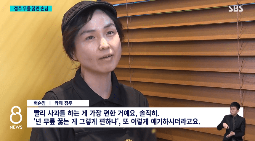 그러자 B 씨는 직접 가게를 찾아와 사과를 요구했고, 어떻게 하면 되겠냐는 A 씨의 말에 무릎이라도 꿇으라고 말했다.