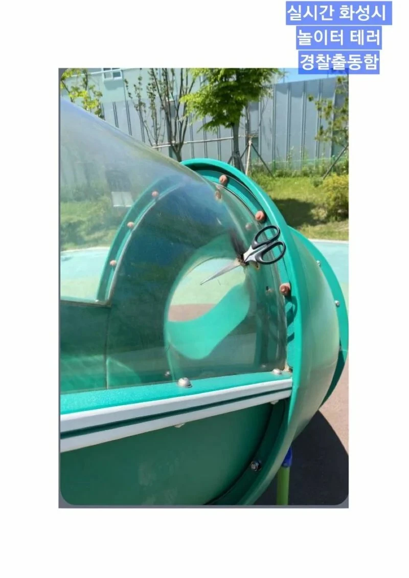 경찰 관계자는 "A군 등이 미끄럼틀 상부에 가위를 꽂아놔서 누구나 위험성을 쉽게 인지할 수 있었기 때문에 부상자가 없었던 것으로 보인다"며 "A군과 범행을 함께한 B군도 신속히 검거해 사건 경위를 파악할 계획"이라고 말했다.