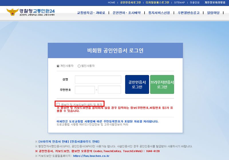(1) 경찰청 교통민원24에 접속하면 이런 첫 화면이 나온다.