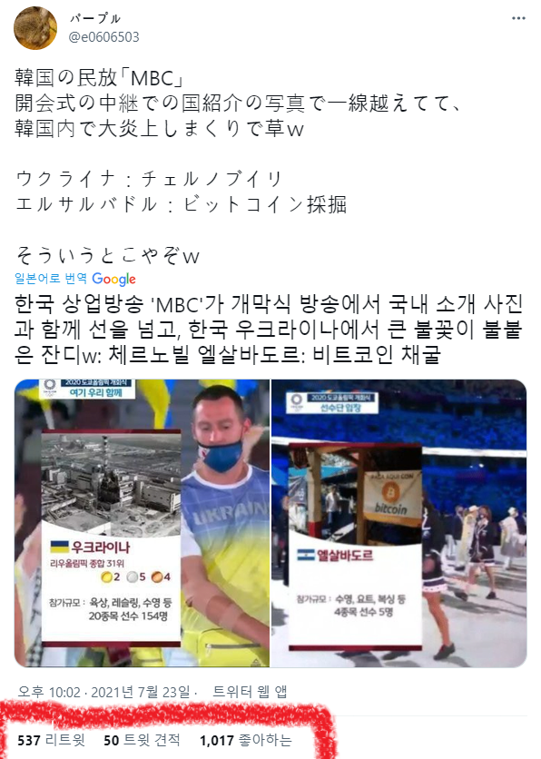 MBC가 2020 도쿄올림픽 개막식을 생중계하면서 참가국을 소개하는 자료화면에 부적절한 사진과 자막을 사용해 논란이 일고 있습니다.