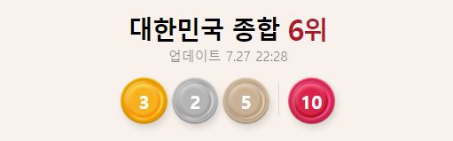 7. 현재 메달 집계 현황