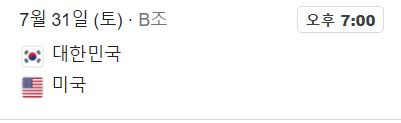 다음 경기 미국전 방송 편성이 어찌 될지는 모르겠다. 7월 31일 토요일 7시경에 중요한 올림픽 한국 경기가 동시에 진행되기 때문이다.