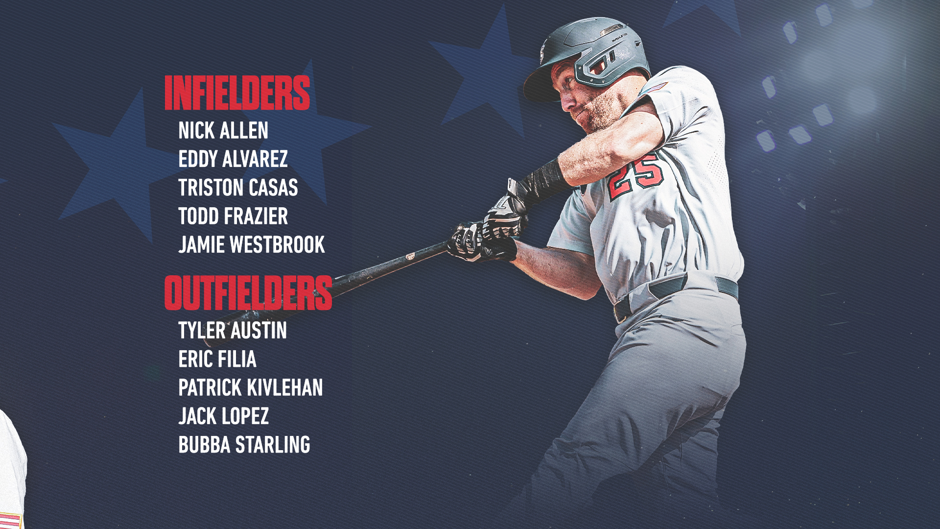 내야수 (5명): Nick Allen (오클랜드 애스레틱스 AA), Eddy Alvarez (마이애미 말린스AAA), Triston Casas (보스턴 레드삭스 AA), Todd Frazier and Jamie Westbrook (밀워키 브루어스 AAA)