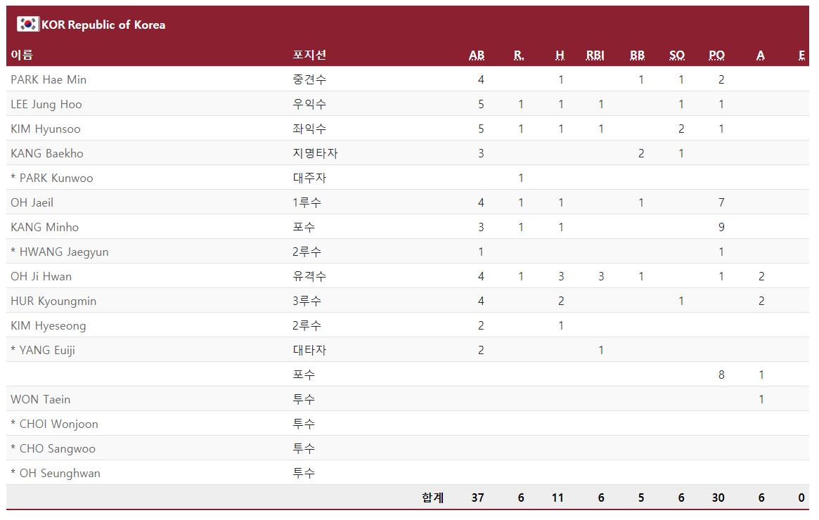 조 1위가 된다면 준결승을 앞두고도 하루를 쉴 수 있다. 그렇게 된다면 준결승을 8월 2일에 이겨두고 8월 7일까지 쉴 수 있기에, 11명밖에 되지 않는 투수진 뎁스를 감안하면 반드시 3연승으로 일찌감치 우승행을 결정해두는 것이 좋다. 그래서 한국은 조별예선 2전 전승을 목표로 한다.
