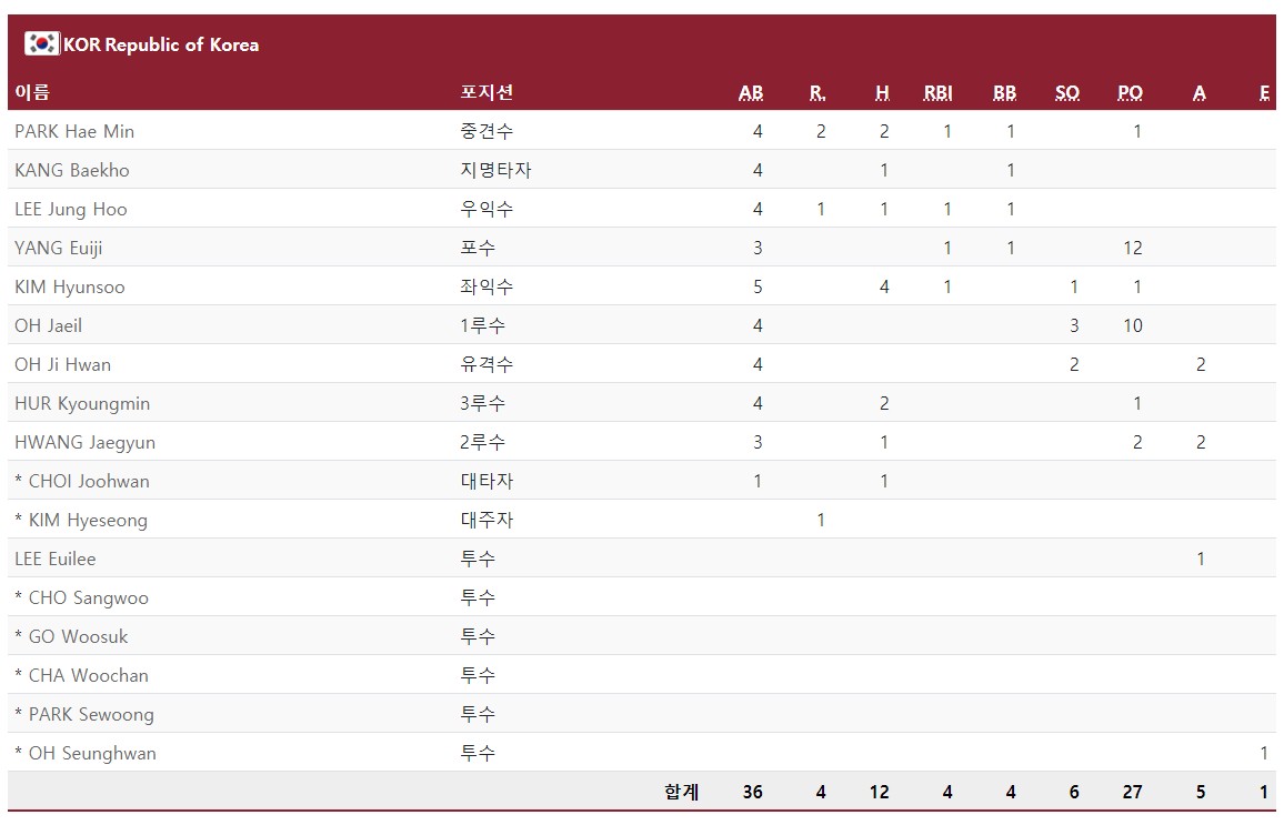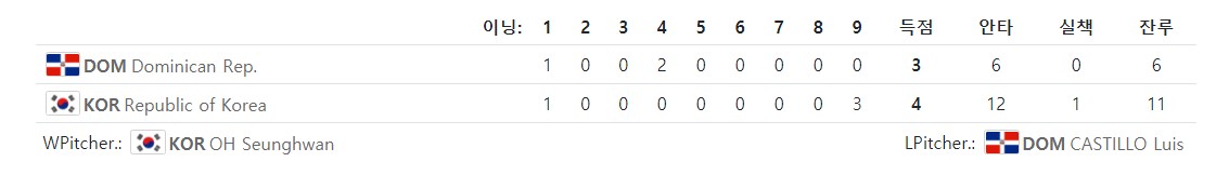 A조 2위 한국과 B조 2위 도미니카 공화국이 녹아웃 스테이지에서 만났다.