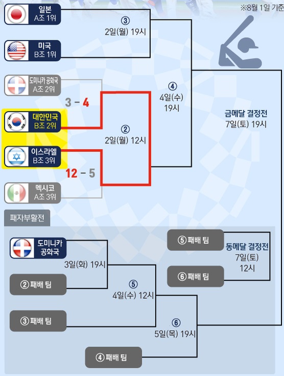 이스라엘을 이기면 미국과 일본의 승자와 경기를 하게 된다.