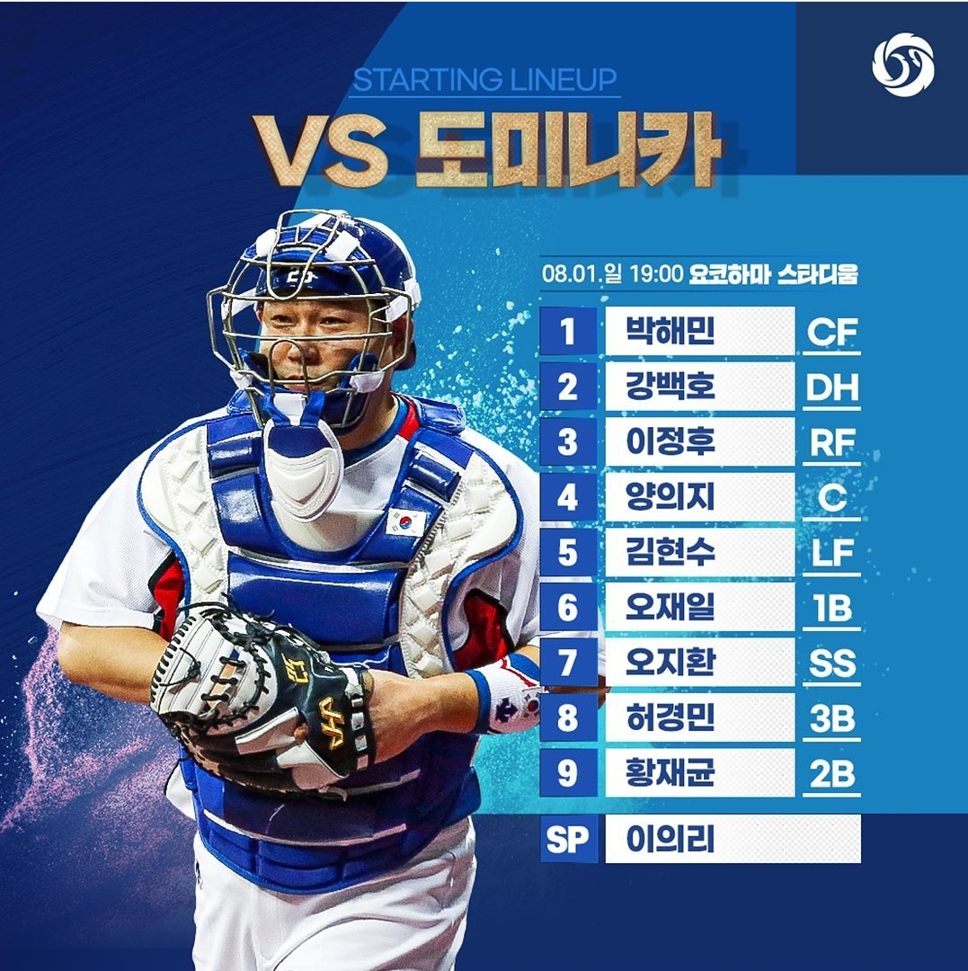 박해민이 그대로 1번을 맡고, 오재일이 미국전에 이어 6번 타자로 나서고, 7, 8번 타자는 변화가 없다.