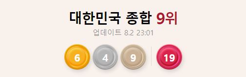 * 한국은 대회 시작하고 10일 동안 매일 메달을 획득하고 있다.