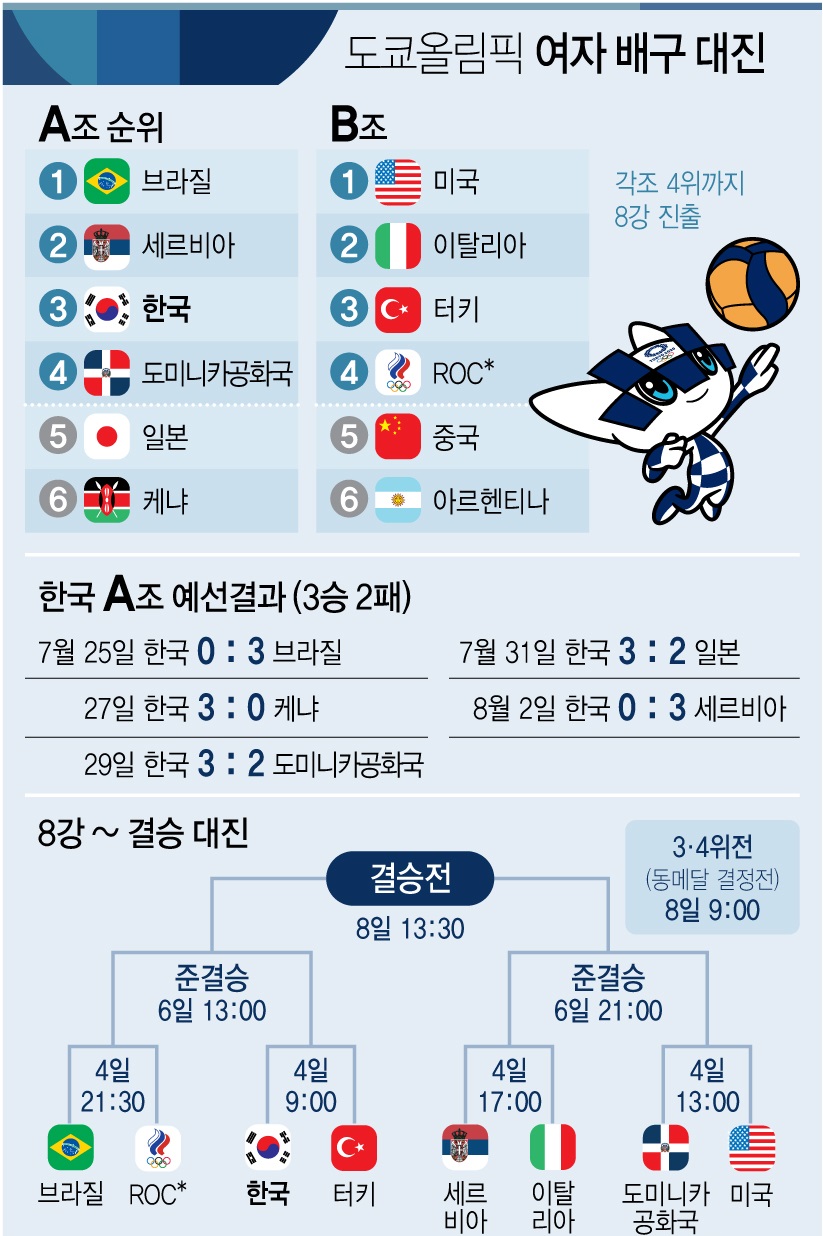 5. 여자 배구, 여자 핸드볼 8강 대진표 완성