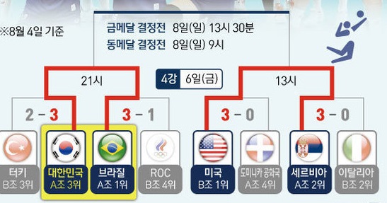 동메달 결정전은 8월 6일 오전 11시에 열린다.
