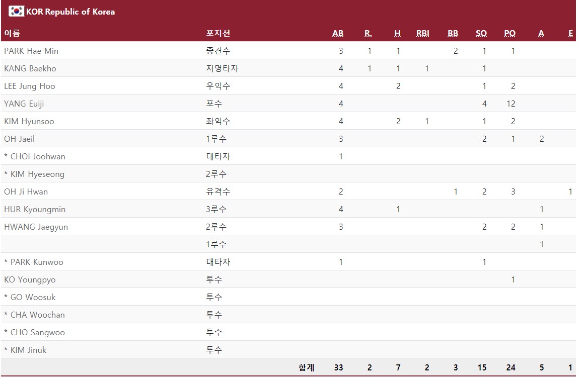 녹아웃 스테이지 1, 2라운드 타순을 그대로 유지했다.