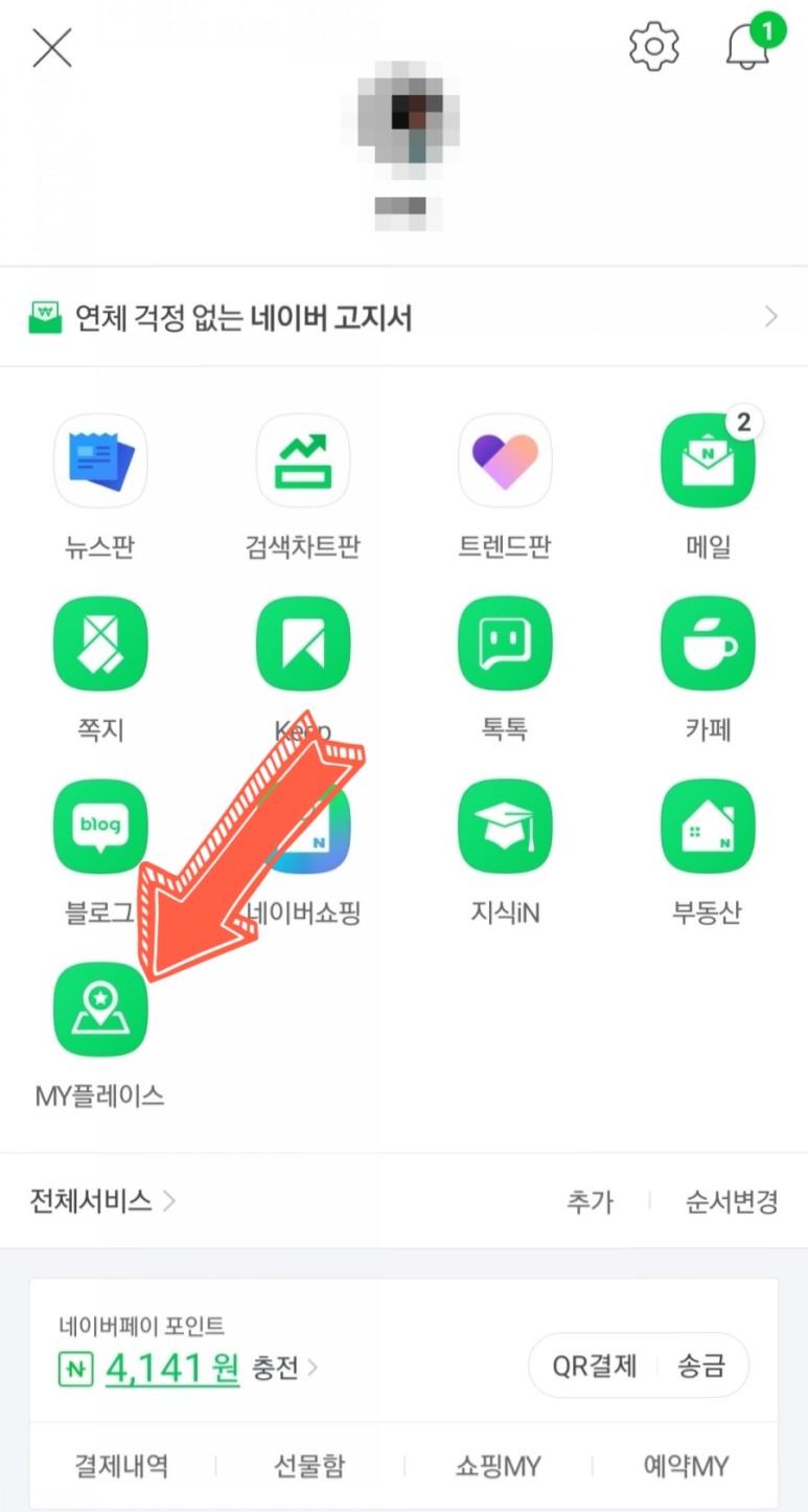 2. 서비스에서 MY플레이스를 찾아서 누른다. 이때 바로가기를 추가하면 앞으로 쓰기에도 편하다.