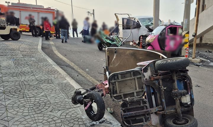 At 2:47 p.m. on November 24, a Staria rental van driven by a 62-year-old tourist identified as A suddenly accelerated shortly after disembarking from a ferry at Cheonjin Port, Udo. The vehicle sped approximately 150 meters before crashing into a large road sign structure.