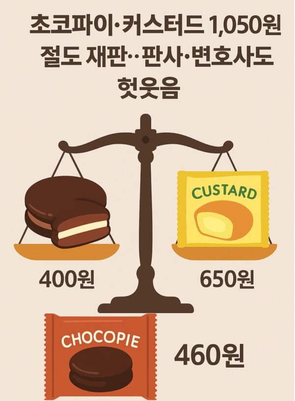 A was indicted for consuming a choco pie (450 won) and a custard snack (600 won) from the workplace refrigerator. While the financial amount was minimal, a guilty ruling would have caused A to lose his security work certification under the Guard Act, effectively leading to termination — a major factor behind the national attention.