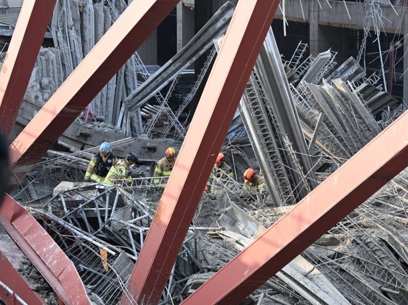 A steel-frame collapse at the construction site of the new Gwangju Public Library has left four workers trapped, with two confirmed dead and two still missing. Rescue operations continue to face severe difficulties as responders struggle to identify the remaining workers’ locations amid growing concerns over welding defects and improper load management during concrete placement.