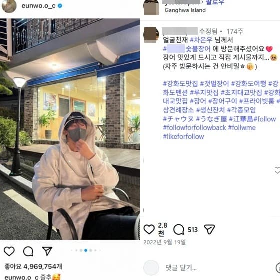 이 장어집은 방송 두 달 전 차은우가 인스타그램에 방문 인증 사진을 올렸던 곳으로, 이후 ‘차은우 단골집’으로 입소문이 퍼졌다. 장어집 SNS 계정에도 차은우 방문 사실을 강조한 홍보 글과 친필 사인 사진이 게시됐다.