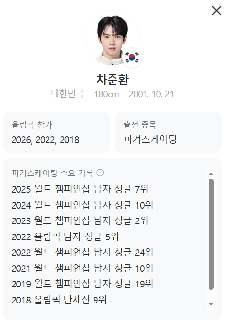 📍피겨 차준환, 보그 홍콩 선정 ‘밀라노 올림픽 잘생긴 남자 선수’ 1위