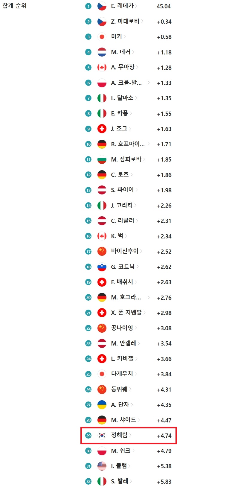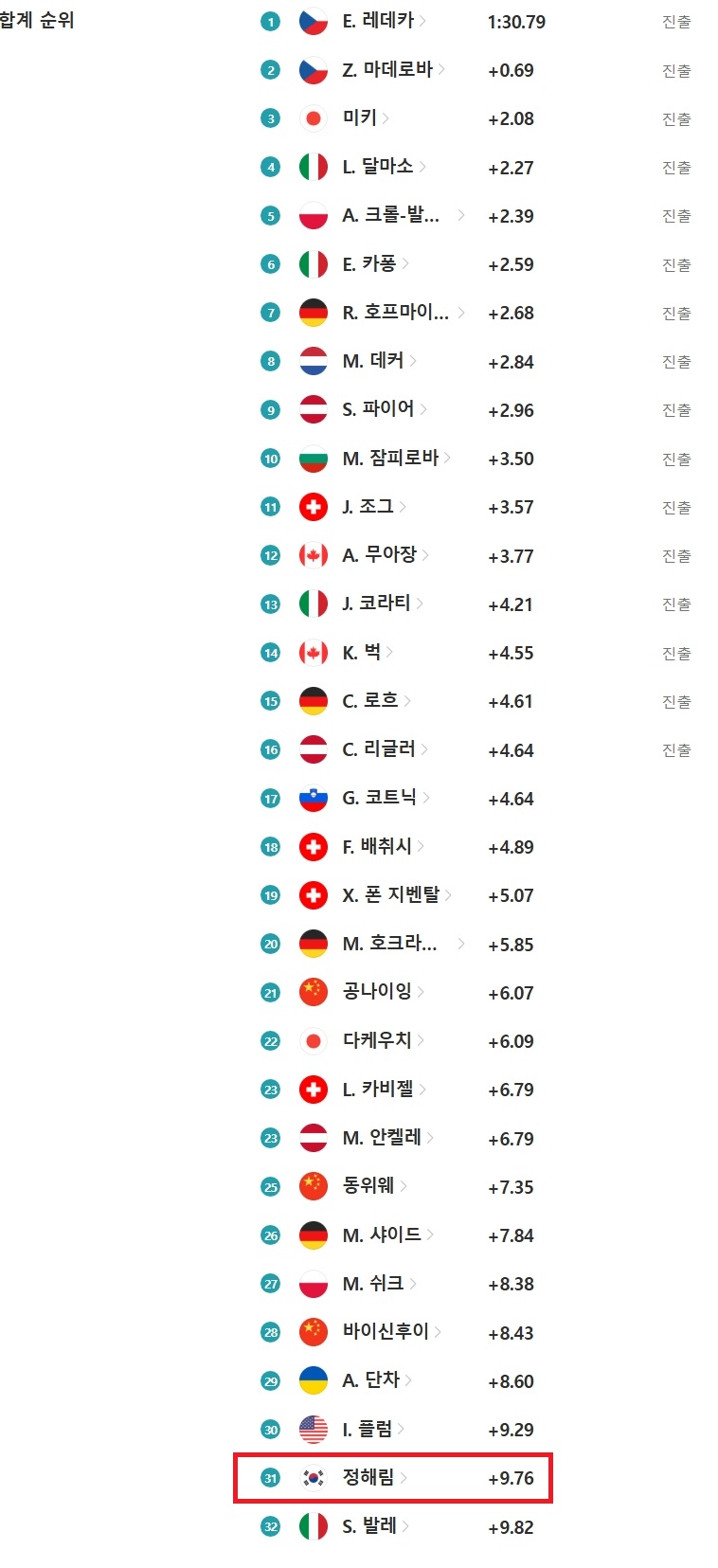 여자 평행대회전 탈락결정전 - 정해림 31위