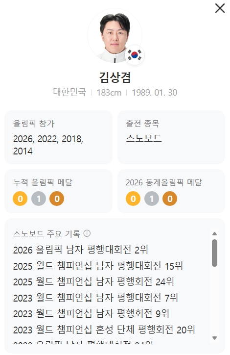 한국 설상의 ‘맏형’ 김상겸(37)이 2026 밀라노-코르티나담페초 동계올림픽에서 한국 선수단에 첫 번째 메달을 안겼다.
