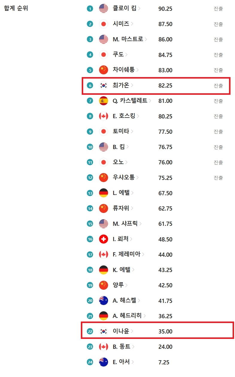 이나윤 22위로 결선 진출 실패