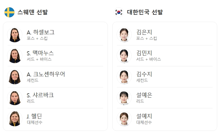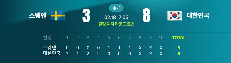 📍컬링 여자 라운드 로빈 8차전 스웨덴 vs 대한민국