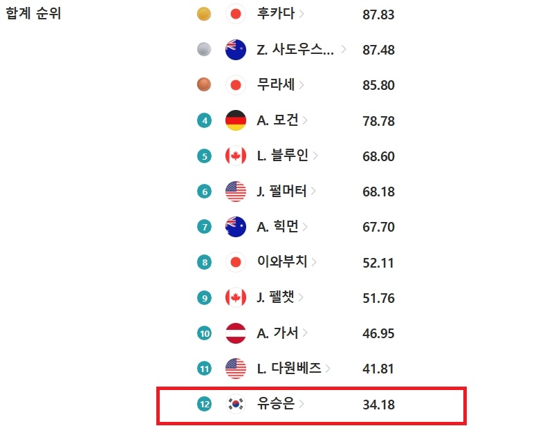 유승은 12위