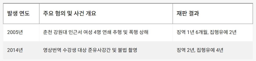 According to reports, Hwang was brought to trial in 2005 on charges of forcibly molesting and assaulting women near Kangwon National University. The incidents reportedly occurred consecutively within an interval of about 30 minutes.